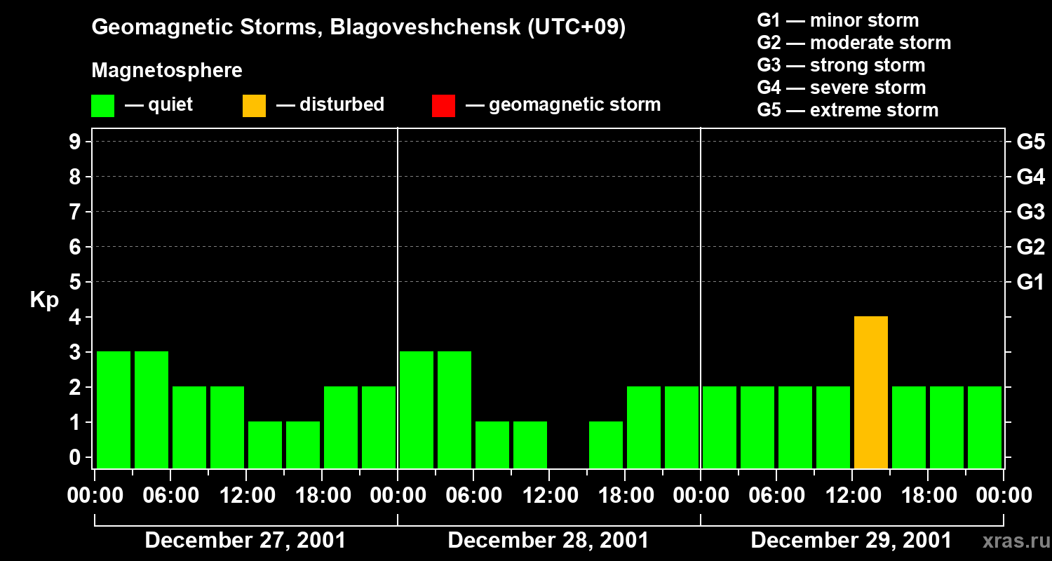 Geomagnetic storms in Blagoveshchensk — Dec 29, 2001