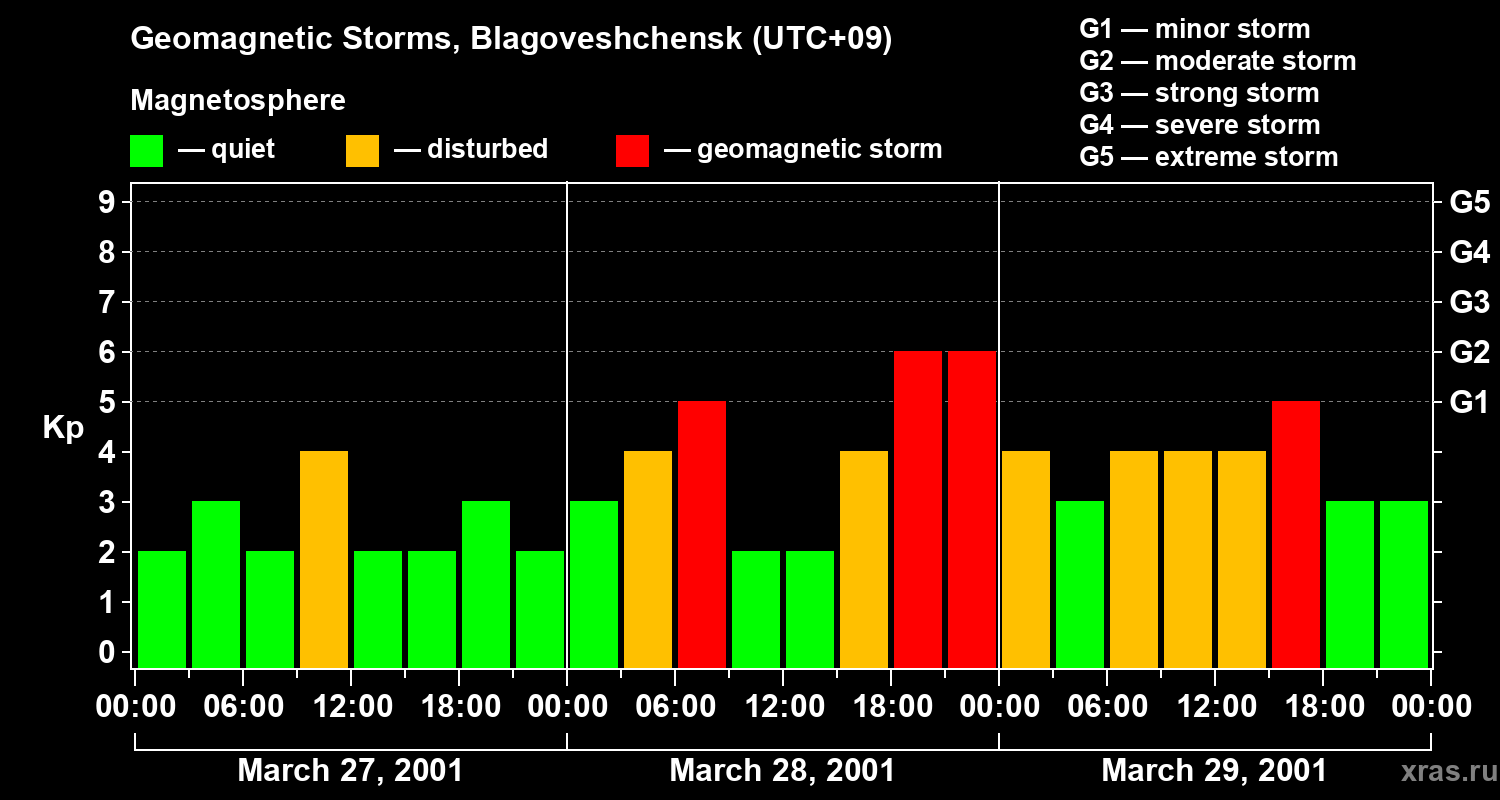 Geomagnetic storms in Blagoveshchensk — Mar 29, 2001