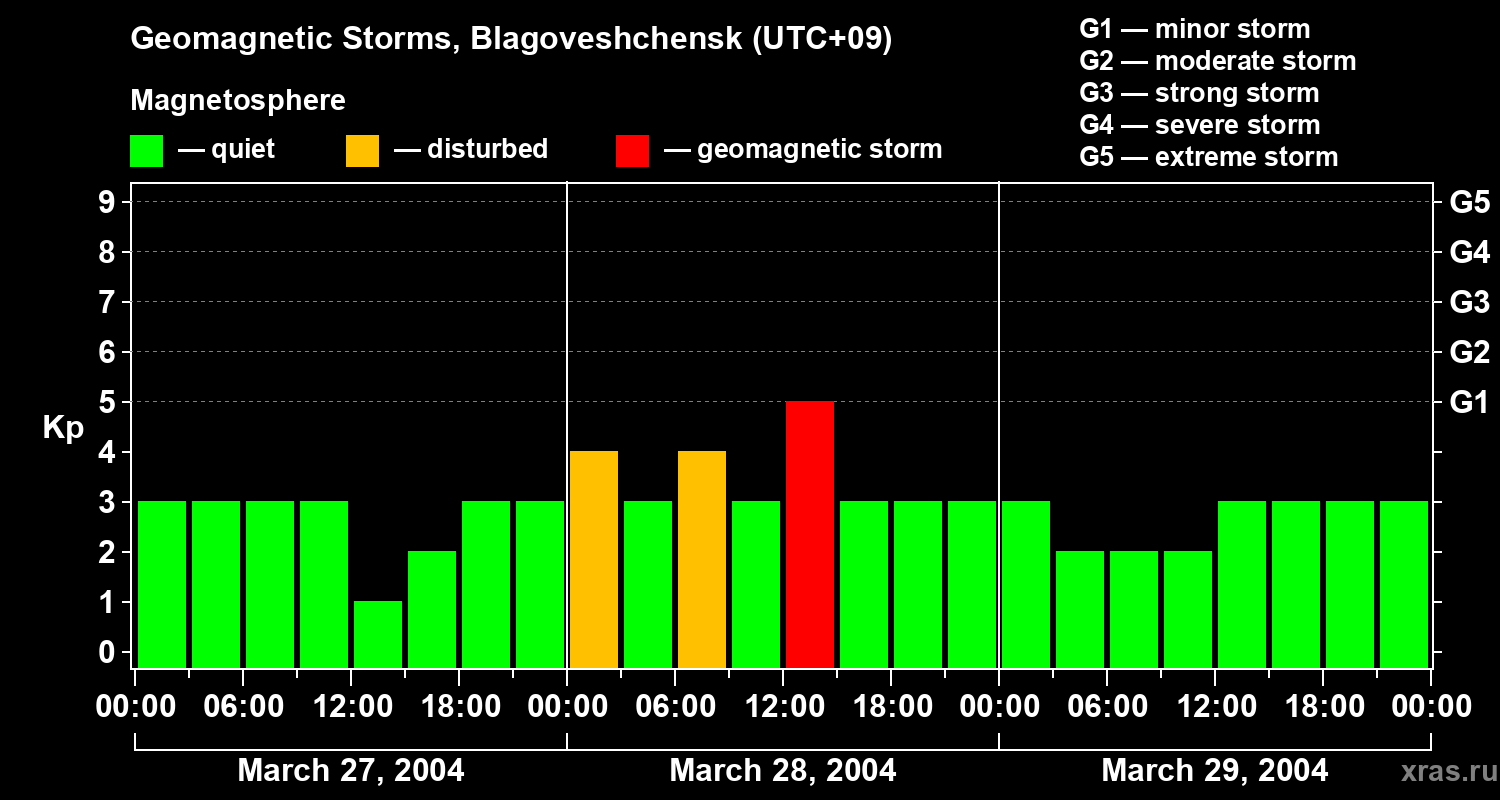 Geomagnetic storms in Blagoveshchensk — Mar 29, 2004