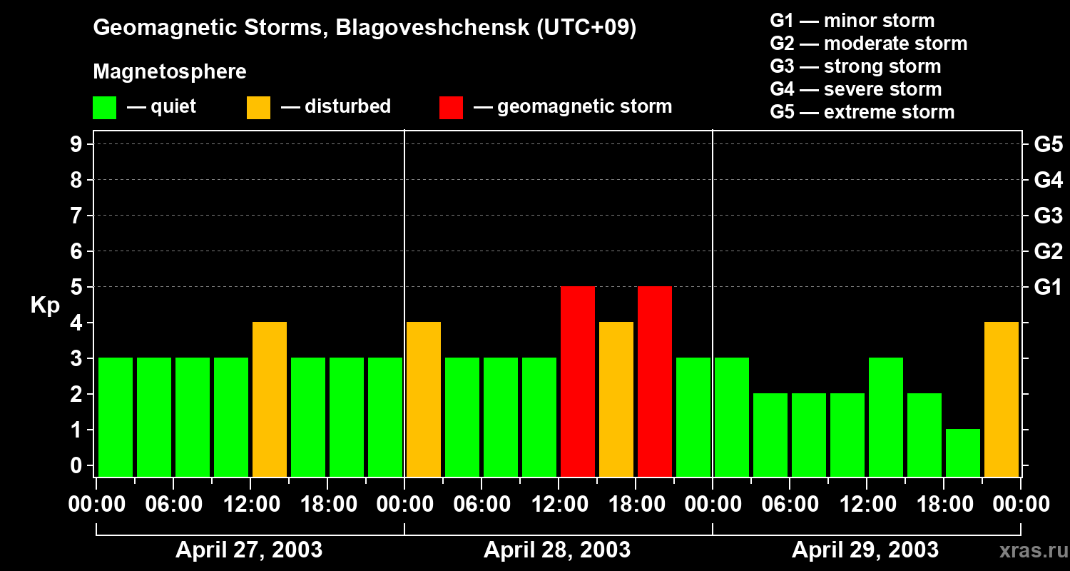 Geomagnetic storms in Blagoveshchensk — Apr 29, 2003