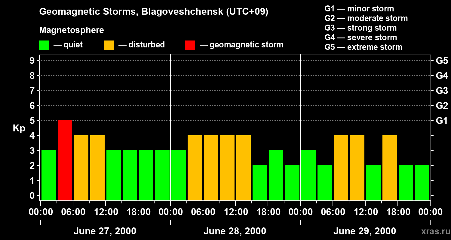 Geomagnetic storms in Blagoveshchensk on Jun 29, 2000