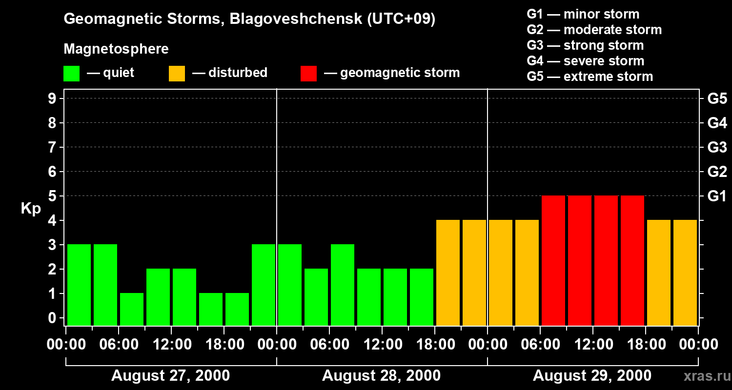 Geomagnetic storms in Blagoveshchensk — Aug 29, 2000