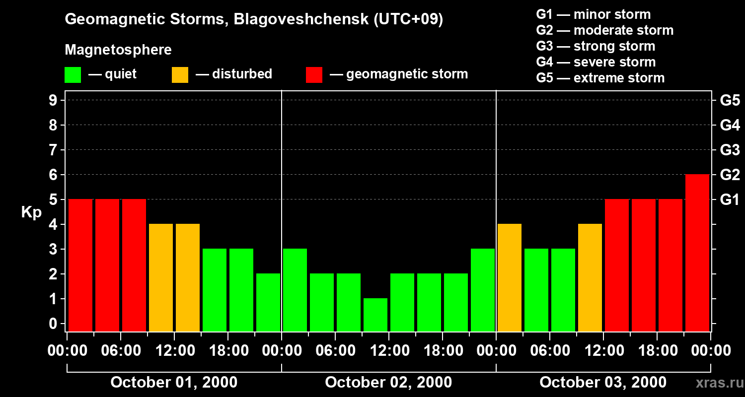 Geomagnetic storms in Blagoveshchensk — Oct 03, 2000