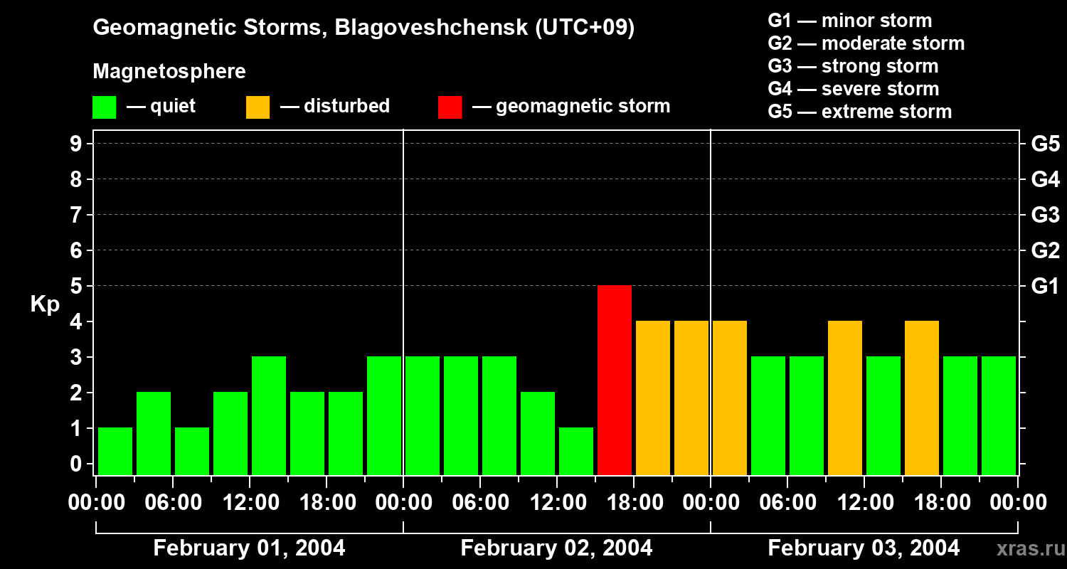 Geomagnetic storms in Blagoveshchensk — Feb 03, 2004