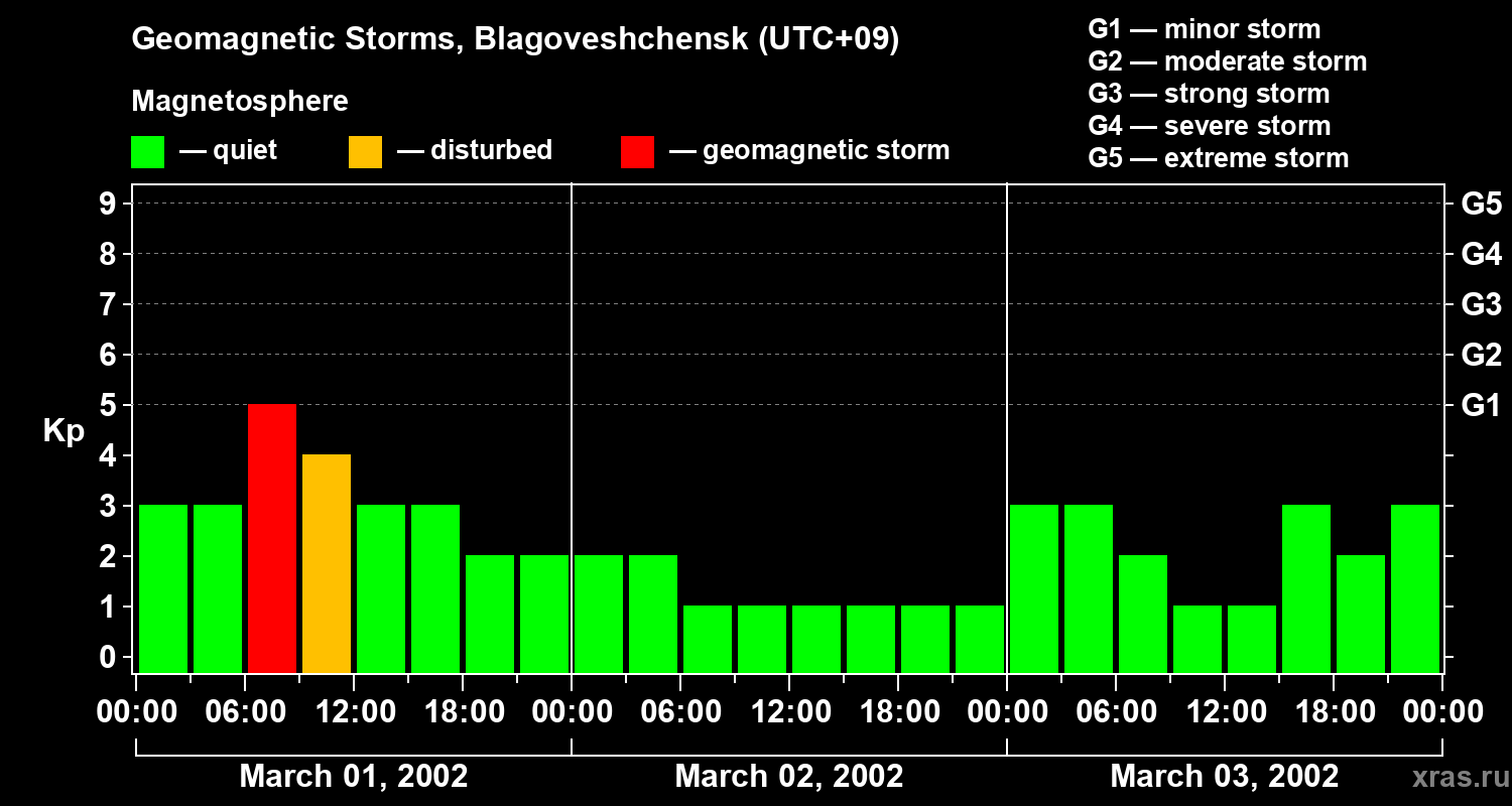 Geomagnetic storms in Blagoveshchensk on Mar 03, 2002