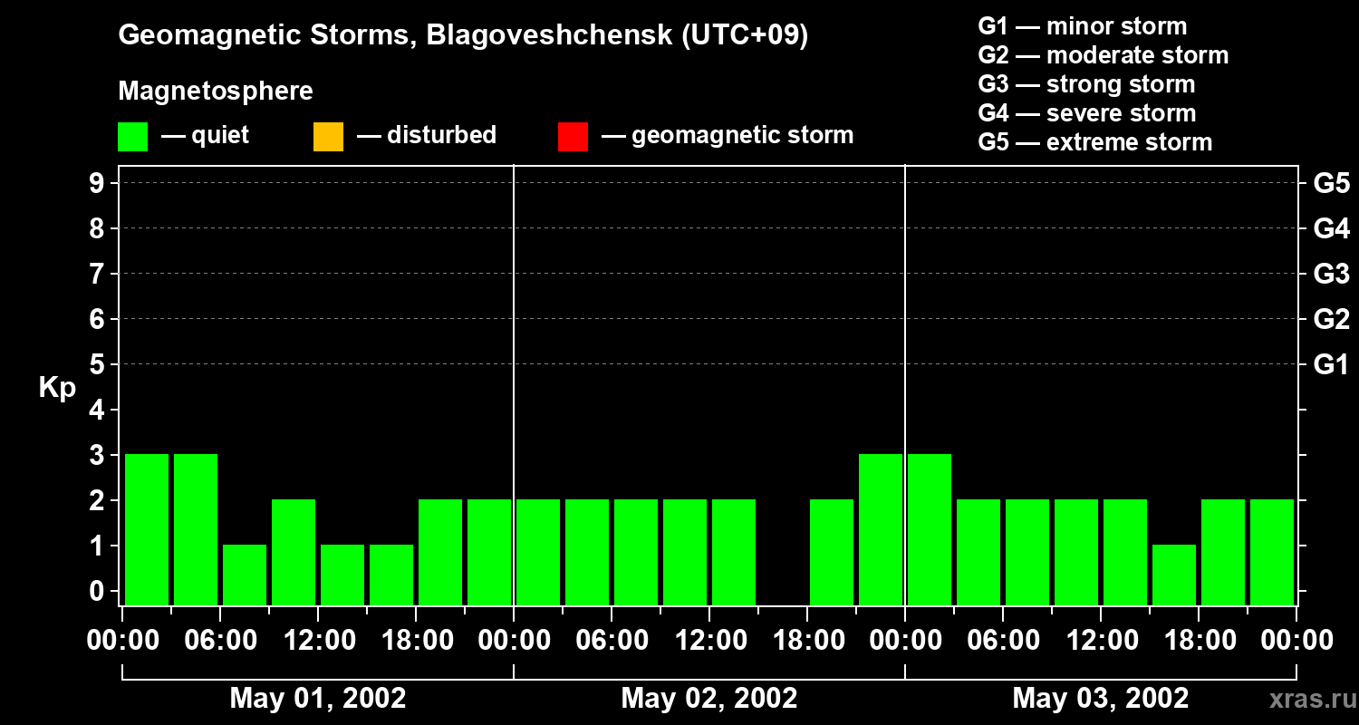 Geomagnetic storms in Blagoveshchensk on May 03, 2002