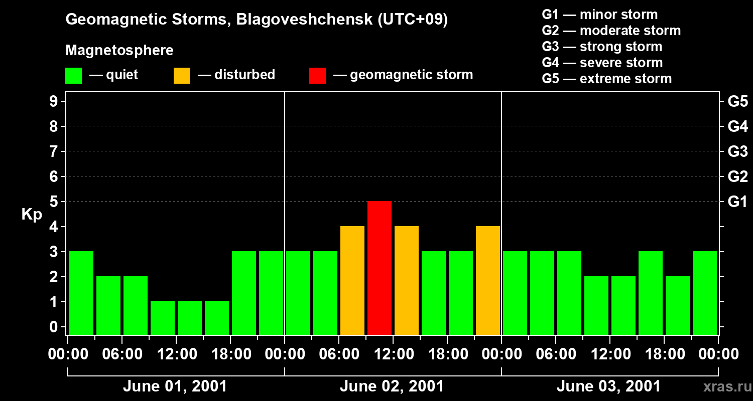Geomagnetic storms in Blagoveshchensk — Jun 03, 2001