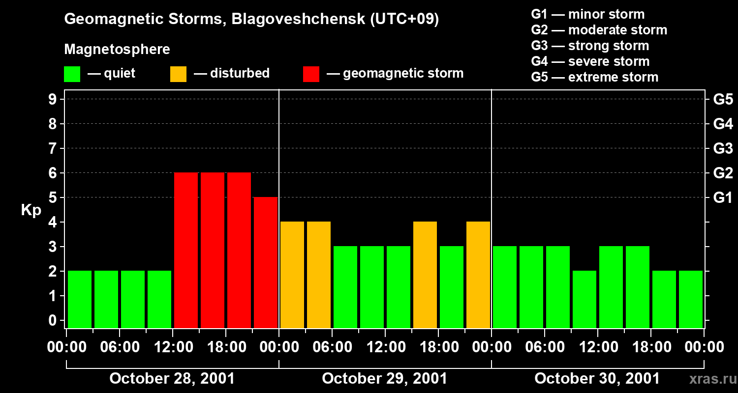Geomagnetic storms in Blagoveshchensk — Oct 30, 2001