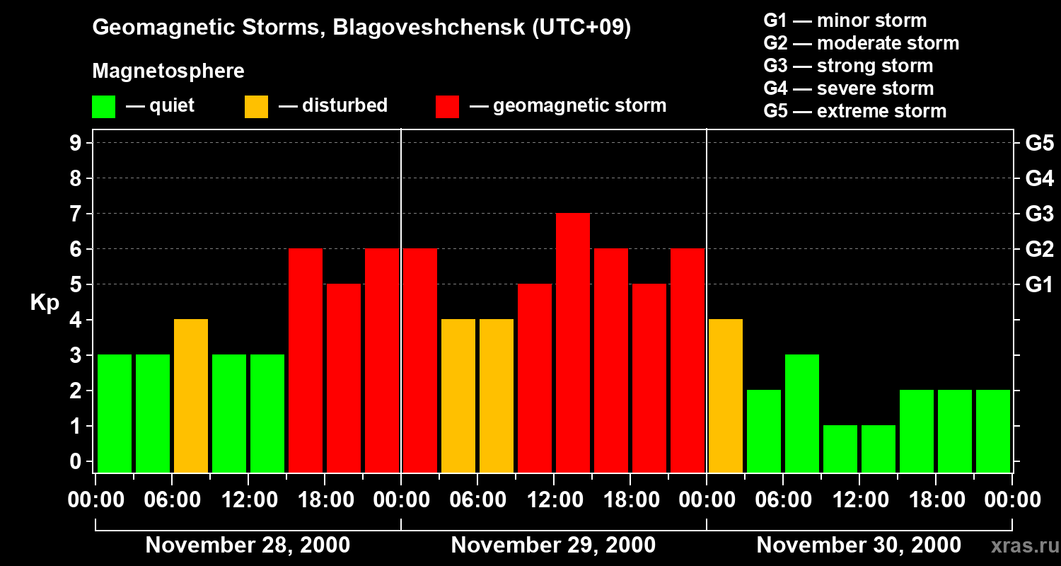 Geomagnetic storms in Blagoveshchensk — Nov 30, 2000