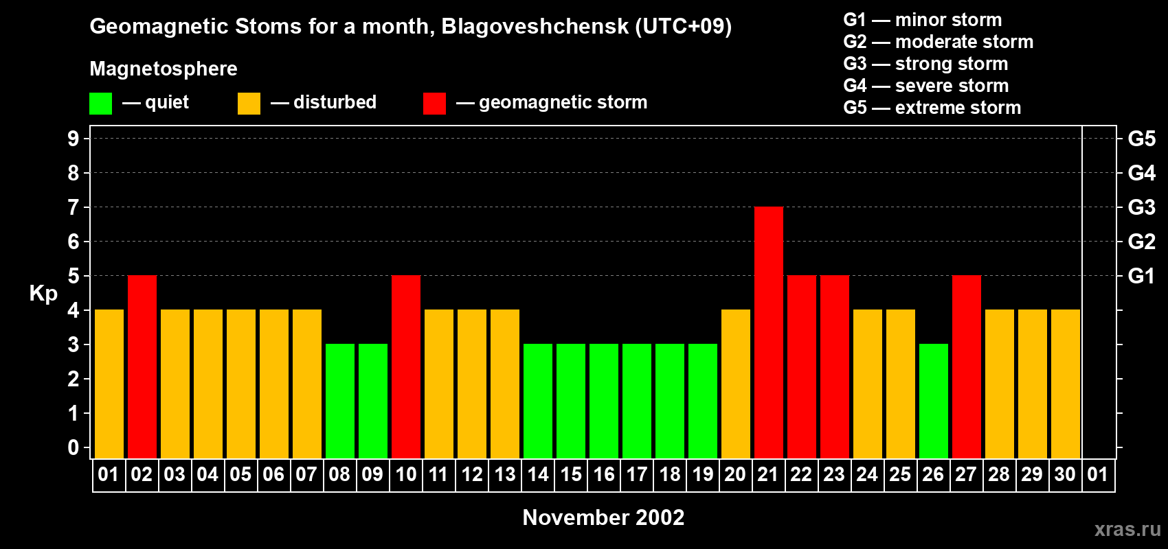 Geomagnetic storms in Blagoveshchensk — Nov 30, 2002