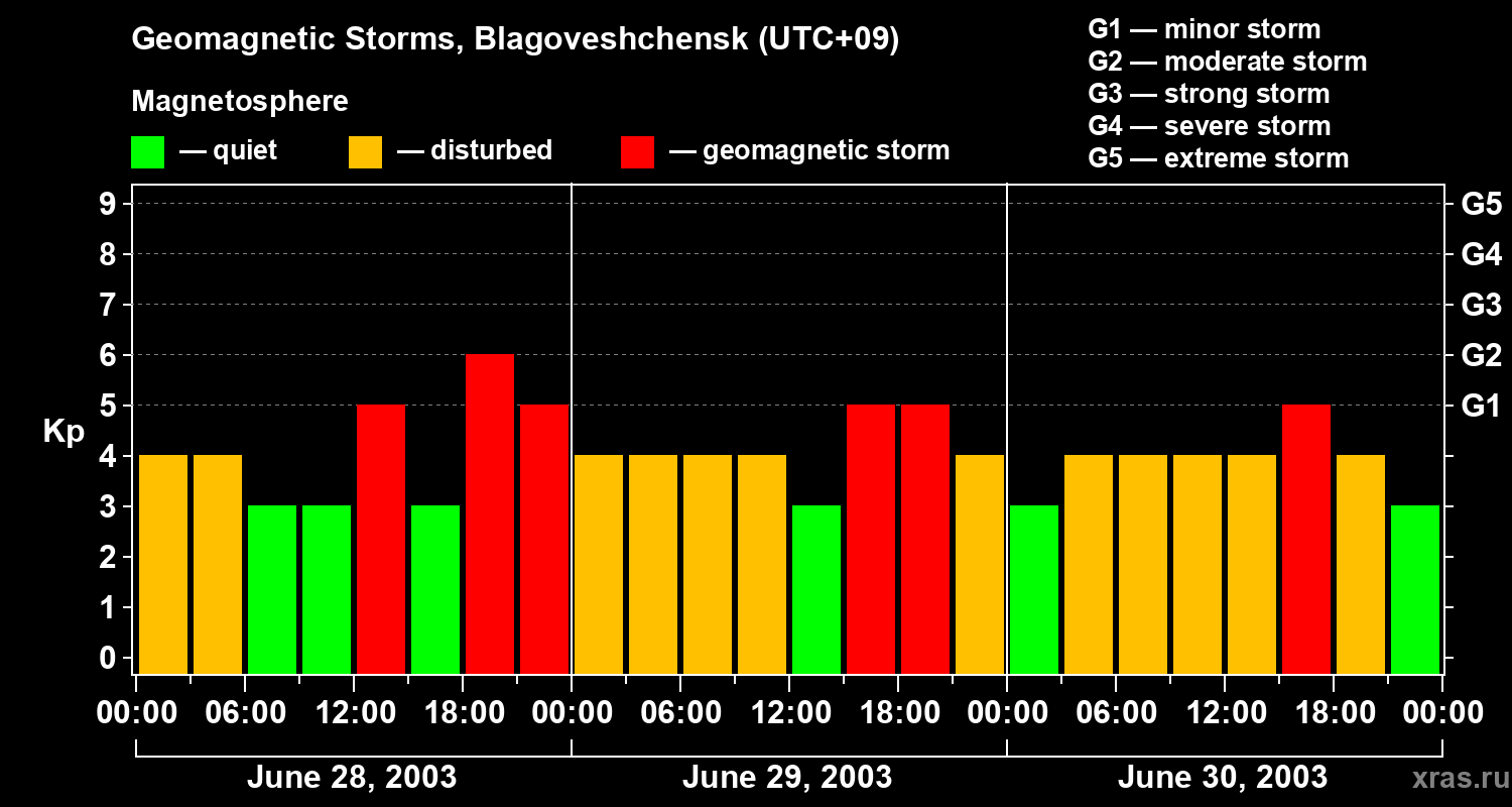 Geomagnetic storms in Blagoveshchensk — Jun 30, 2003