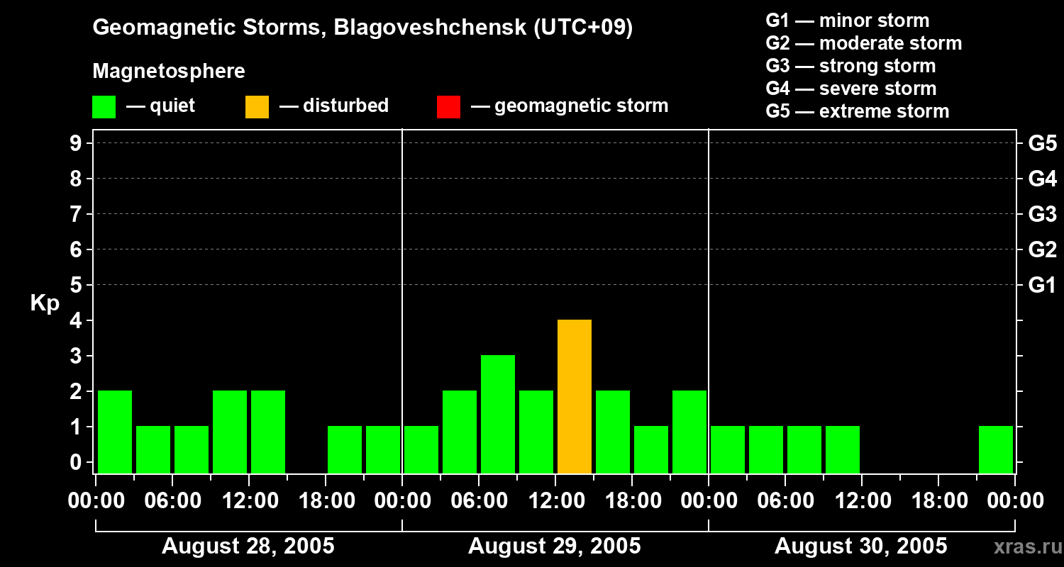 Geomagnetic storms in Blagoveshchensk on Aug 30, 2005