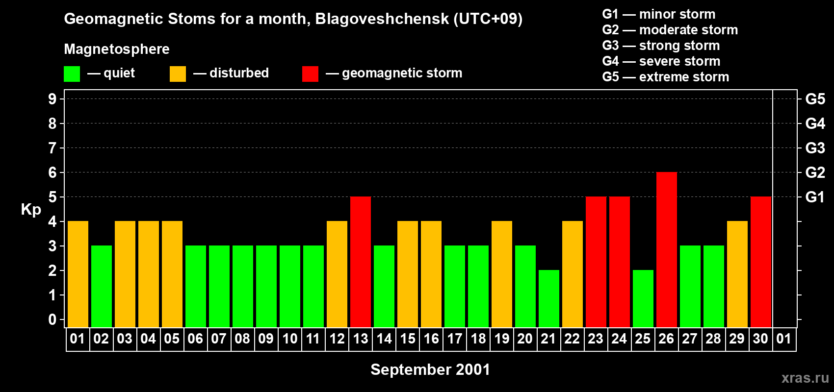 Geomagnetic storms in Blagoveshchensk in September 2001