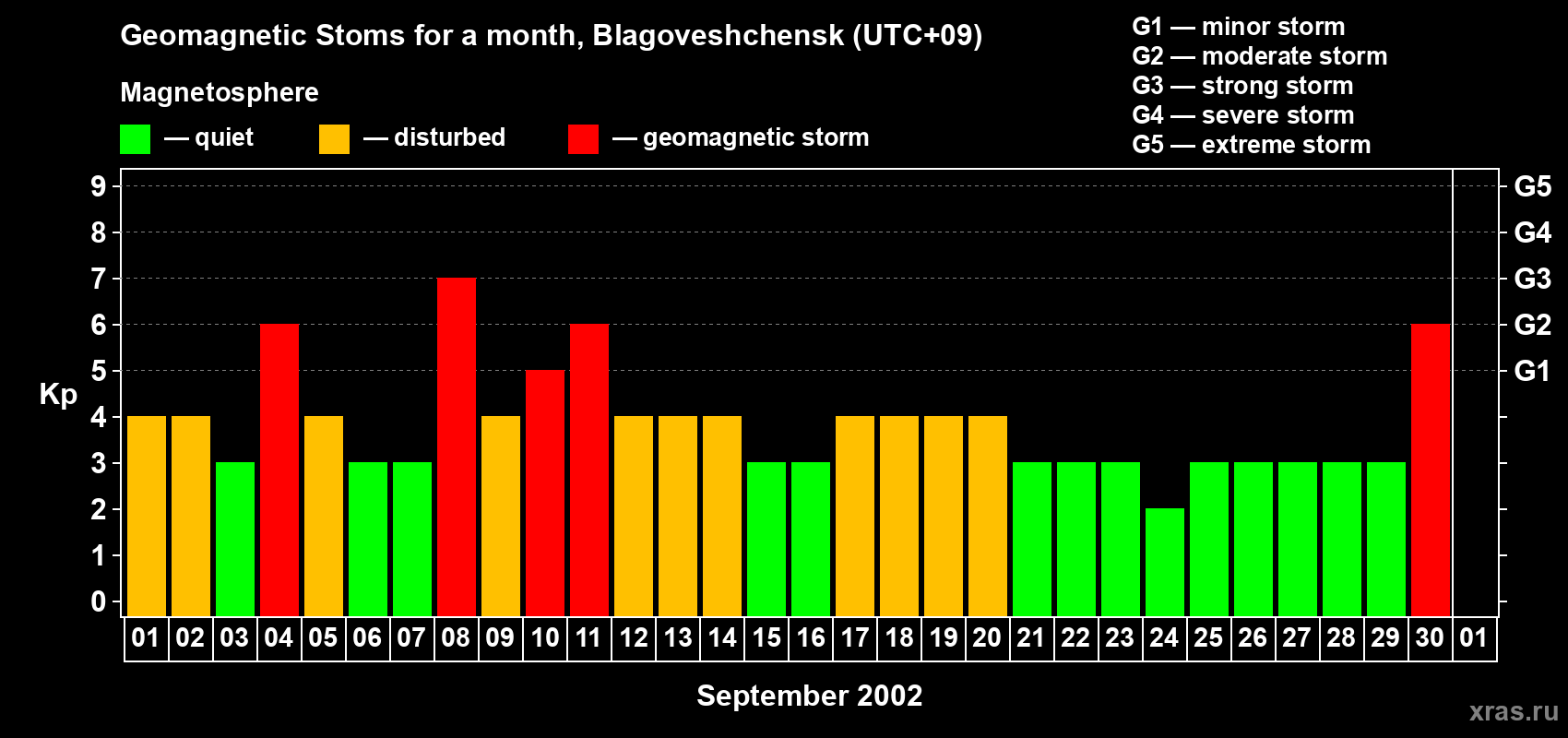 Geomagnetic storms in Blagoveshchensk — Sep 30, 2002