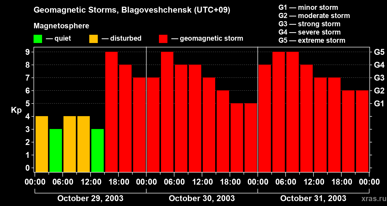 Geomagnetic storms in Blagoveshchensk — Oct 31, 2003