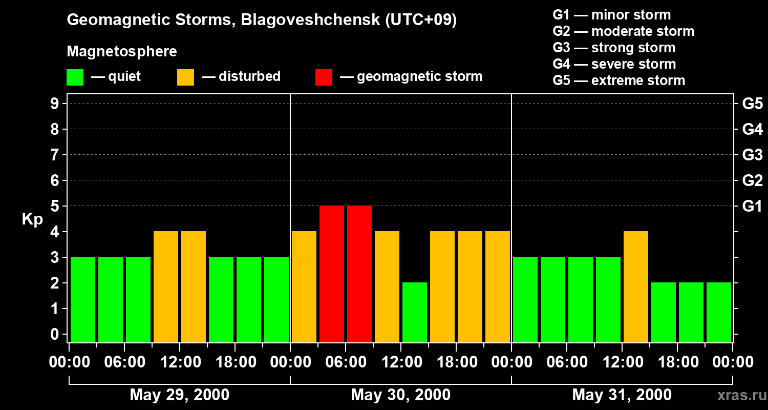 Geomagnetic storms in Blagoveshchensk on May 31, 2000