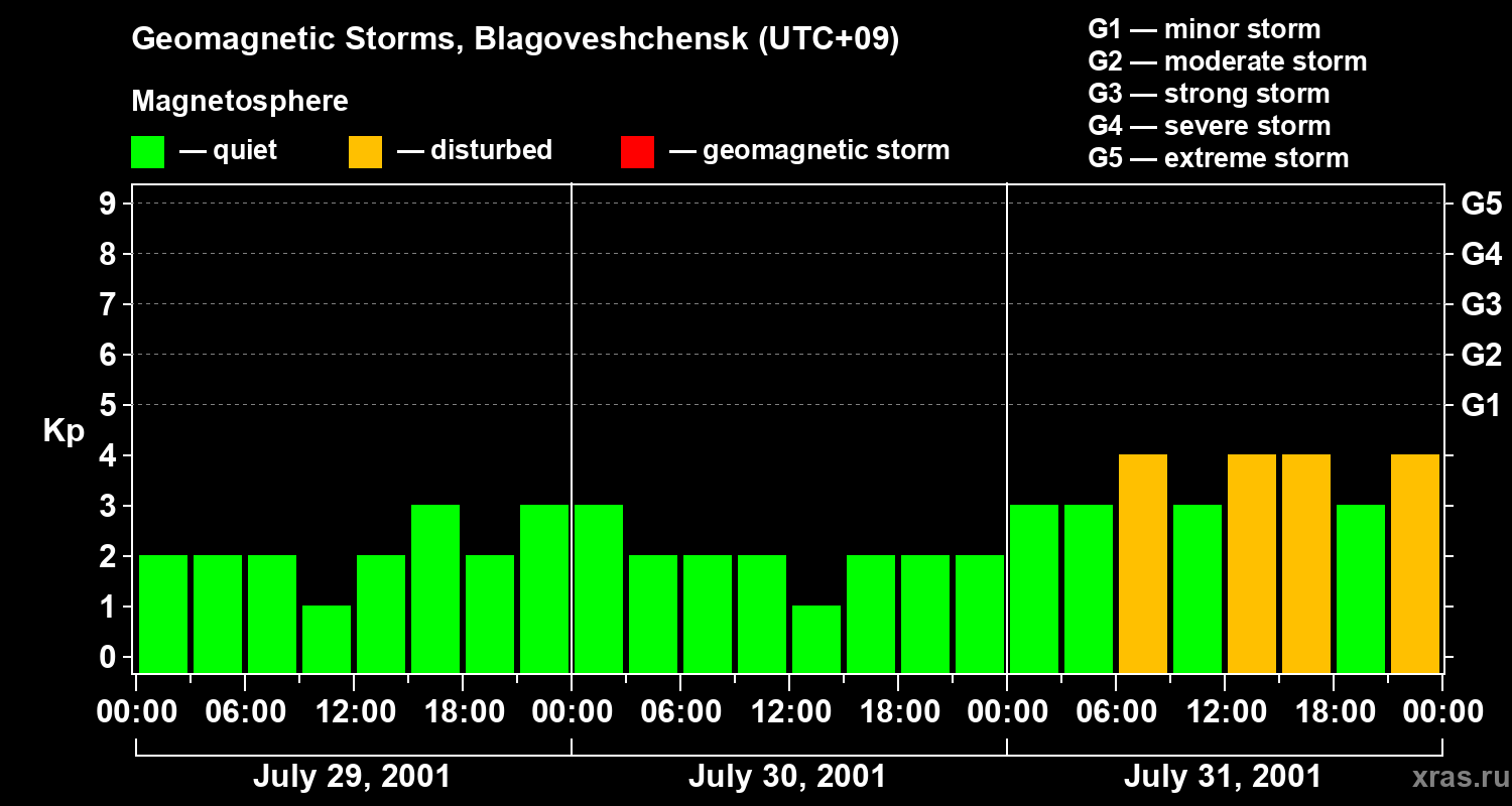 Geomagnetic storms in Blagoveshchensk on Jul 31, 2001
