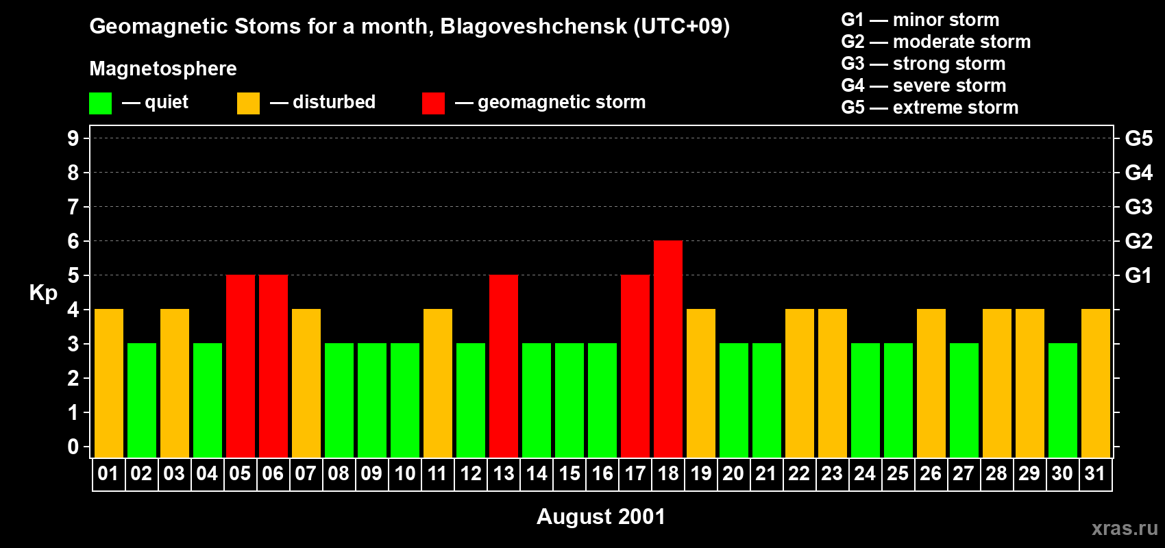 Geomagnetic storms in Blagoveshchensk in August 2001