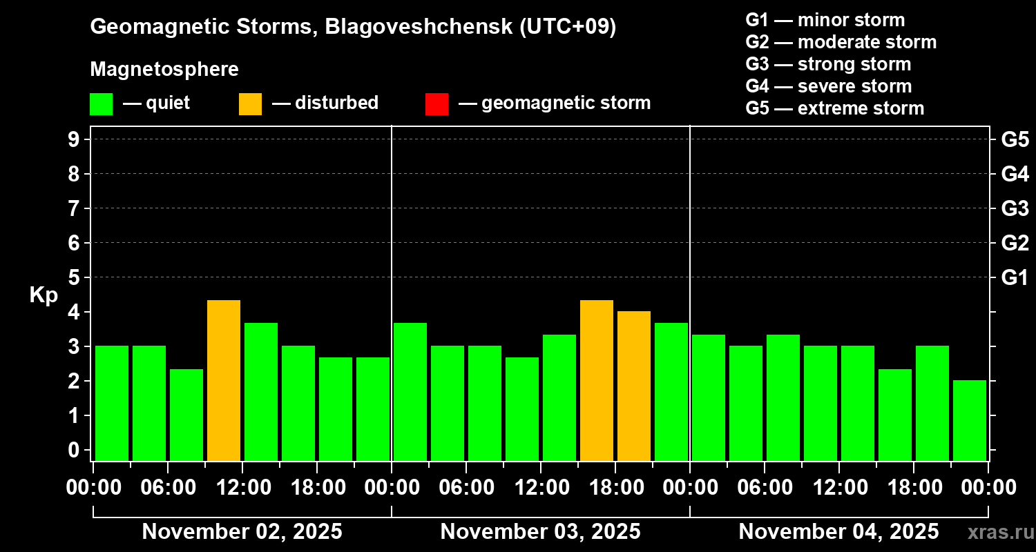 Geomagnetic storms in Blagoveshchensk — Nov 04, 2025