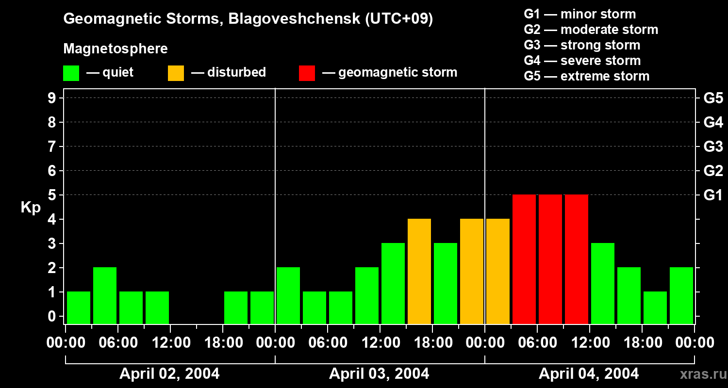 Geomagnetic storms in Blagoveshchensk — Apr 04, 2004