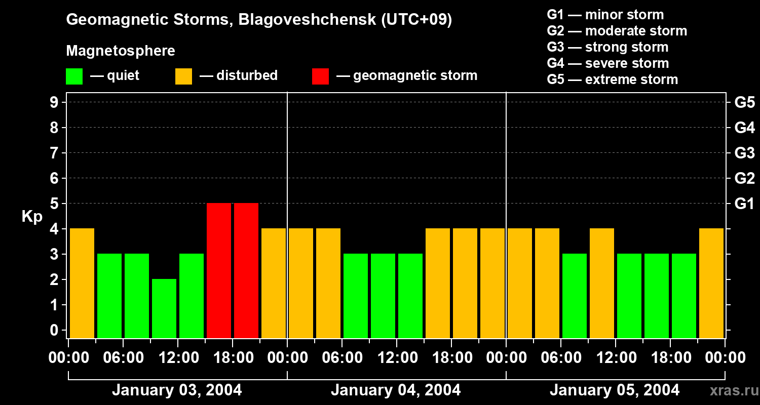 Geomagnetic storms in Blagoveshchensk — Jan 05, 2004
