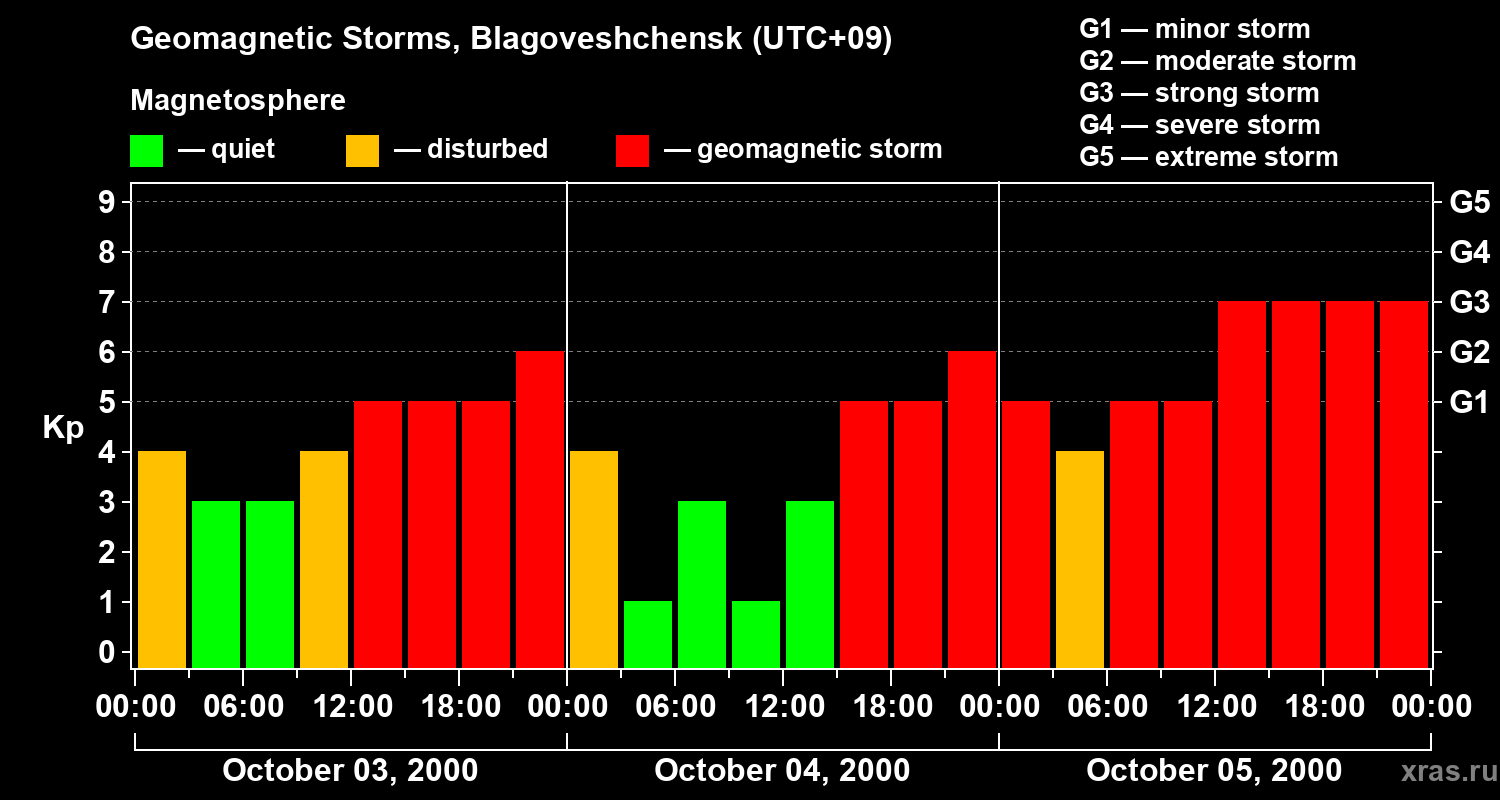 Geomagnetic storms in Blagoveshchensk on Oct 05, 2000