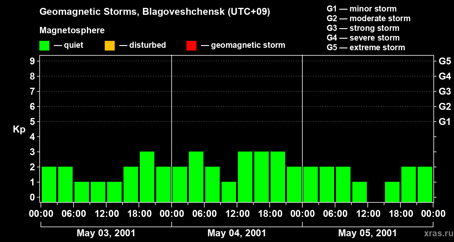 Geomagnetic storms in Blagoveshchensk on May 05, 2001