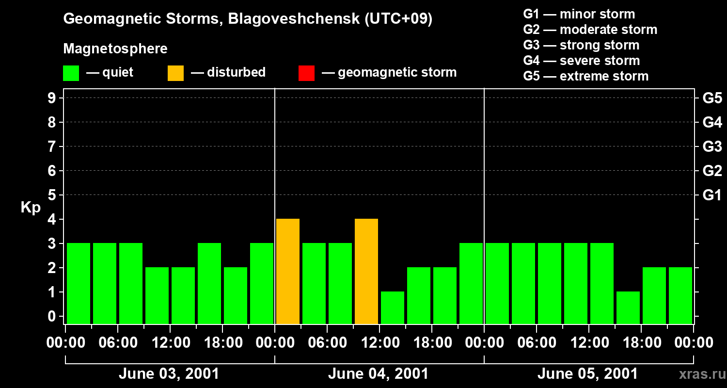Geomagnetic storms in Blagoveshchensk on Jun 05, 2001
