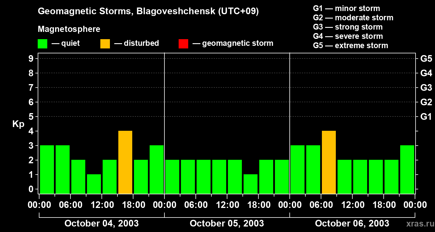 Geomagnetic storms in Blagoveshchensk in October 2003