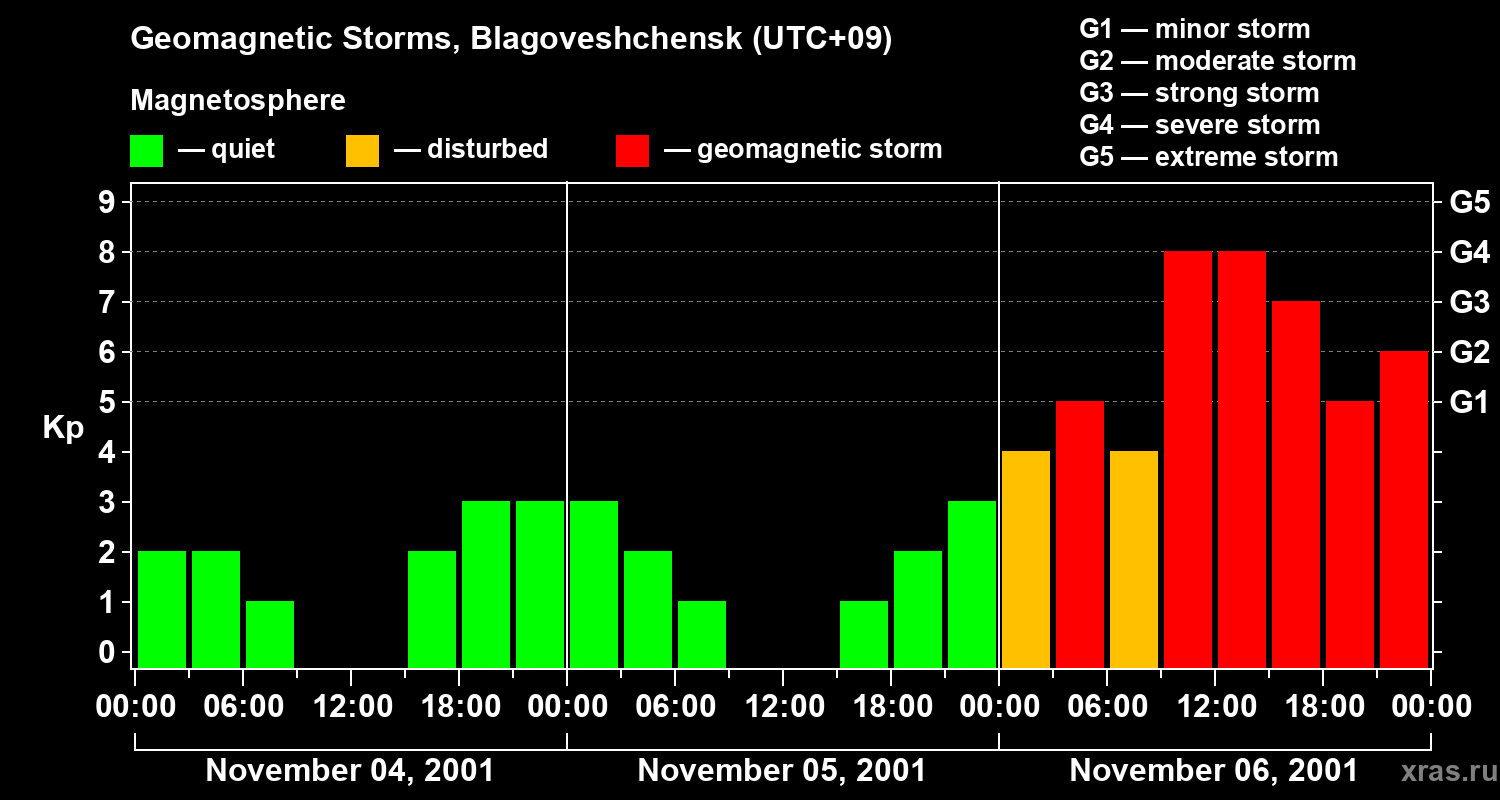 Geomagnetic storms in Blagoveshchensk — Nov 06, 2001