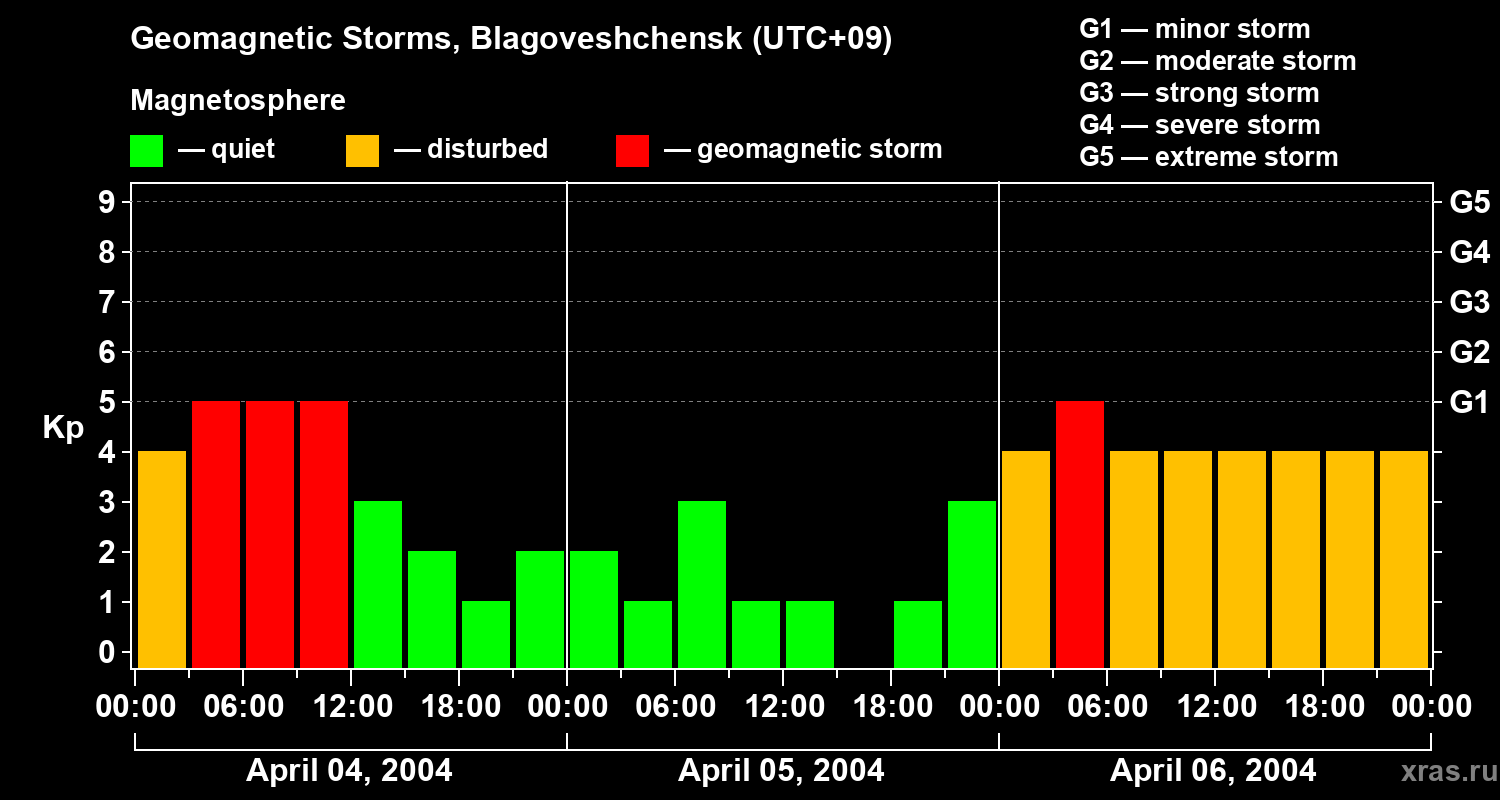 Geomagnetic storms in Blagoveshchensk in April 2004
