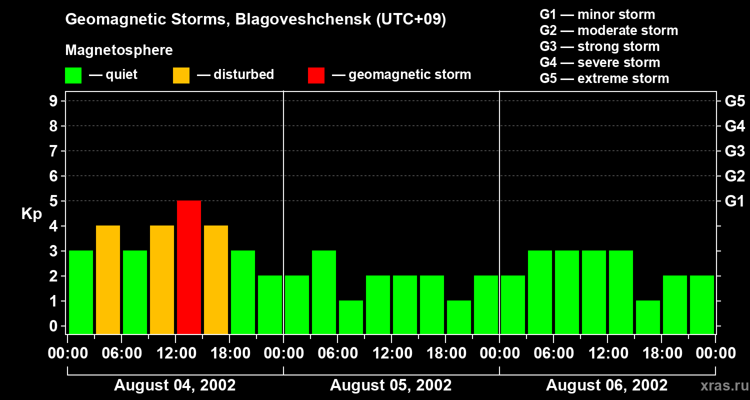 Geomagnetic storms in Blagoveshchensk on Aug 06, 2002
