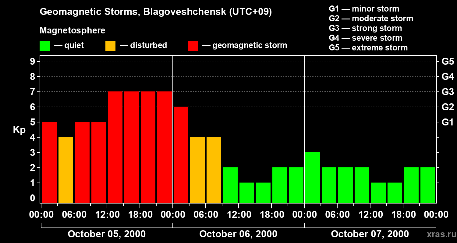 Geomagnetic storms in Blagoveshchensk — Oct 07, 2000