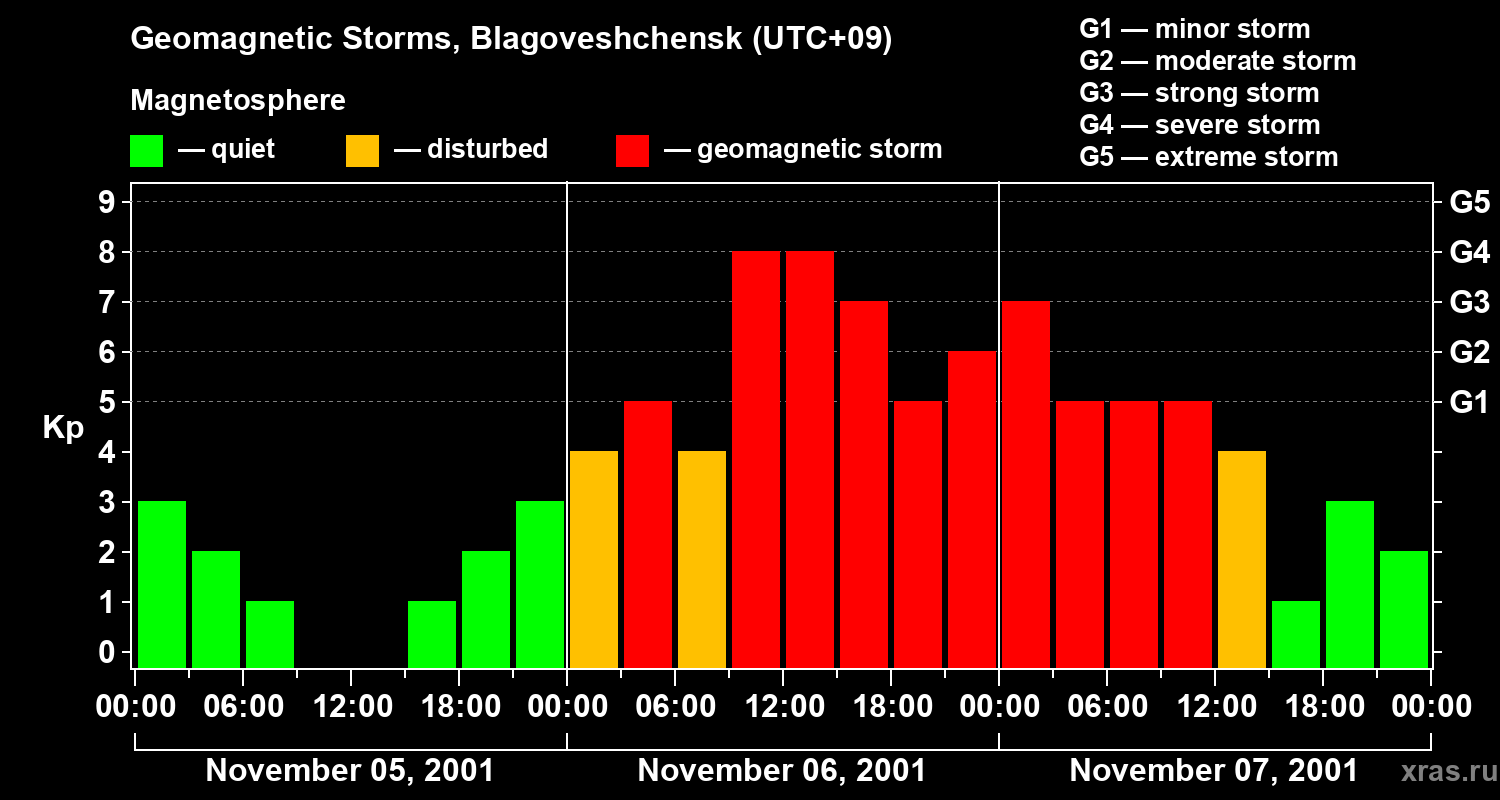 Geomagnetic storms in Blagoveshchensk — Nov 07, 2001