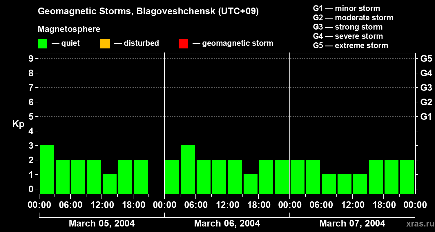 Geomagnetic storms in Blagoveshchensk in March 2004