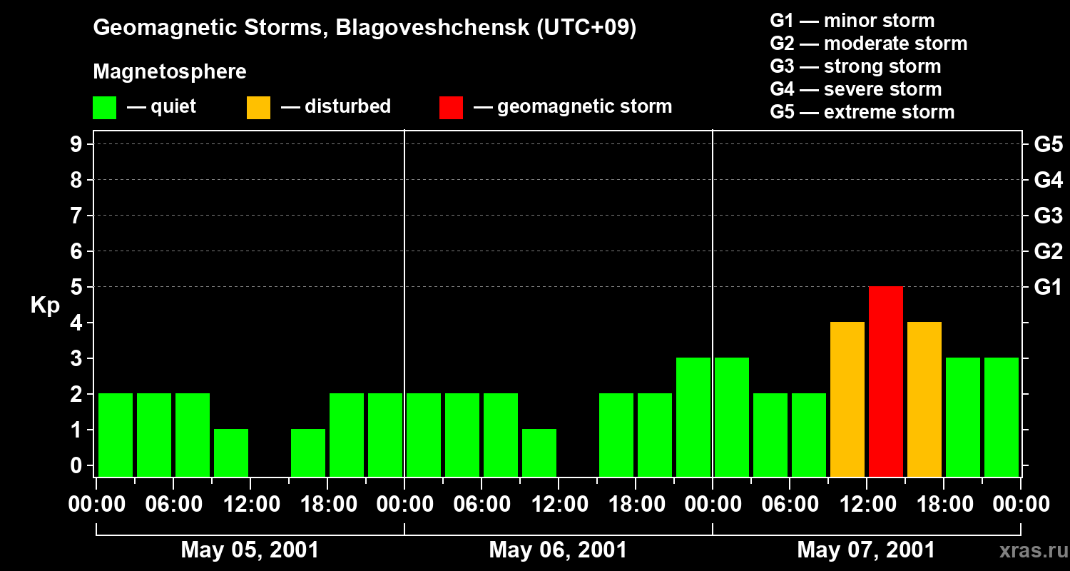 Geomagnetic storms in Blagoveshchensk — May 07, 2001