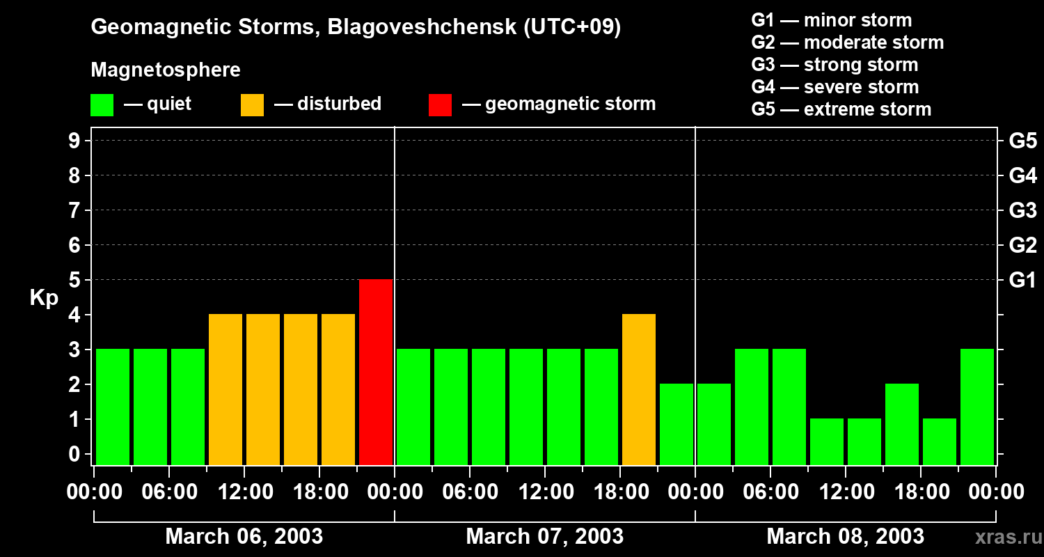 Geomagnetic storms in Blagoveshchensk — Mar 08, 2003