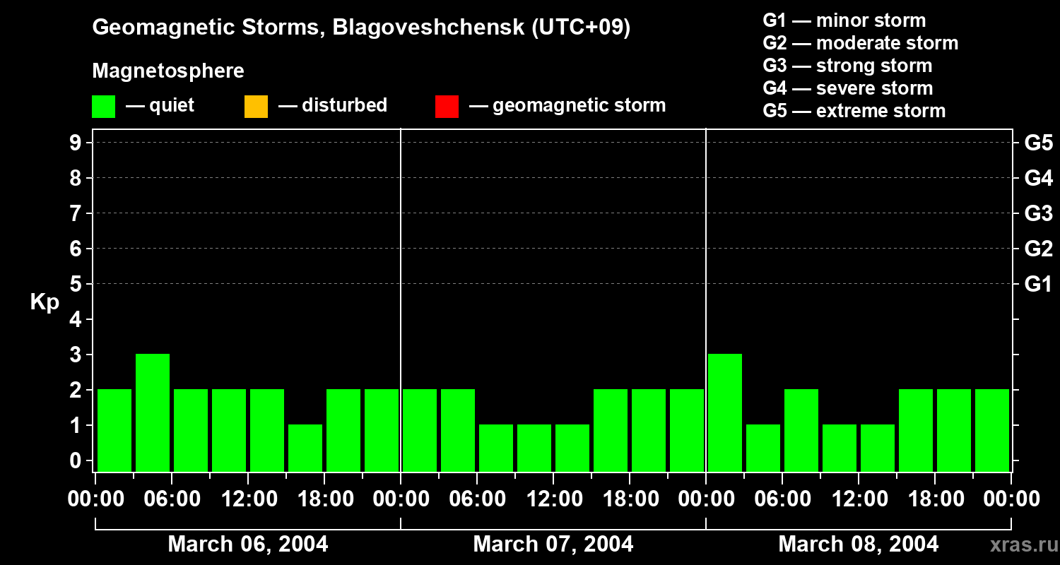 Geomagnetic storms in Blagoveshchensk — Mar 08, 2004