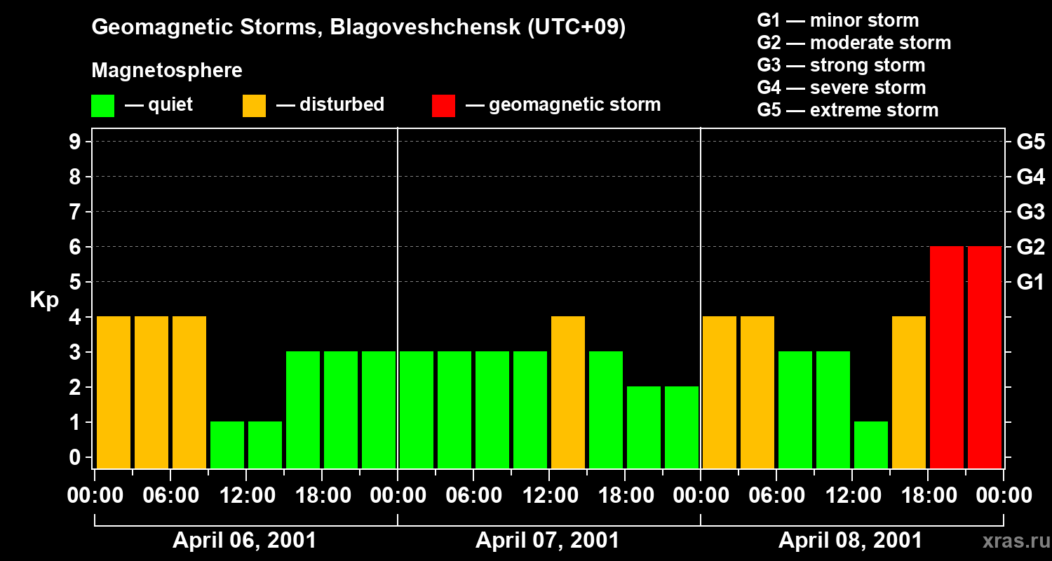 Geomagnetic storms in Blagoveshchensk on Apr 08, 2001