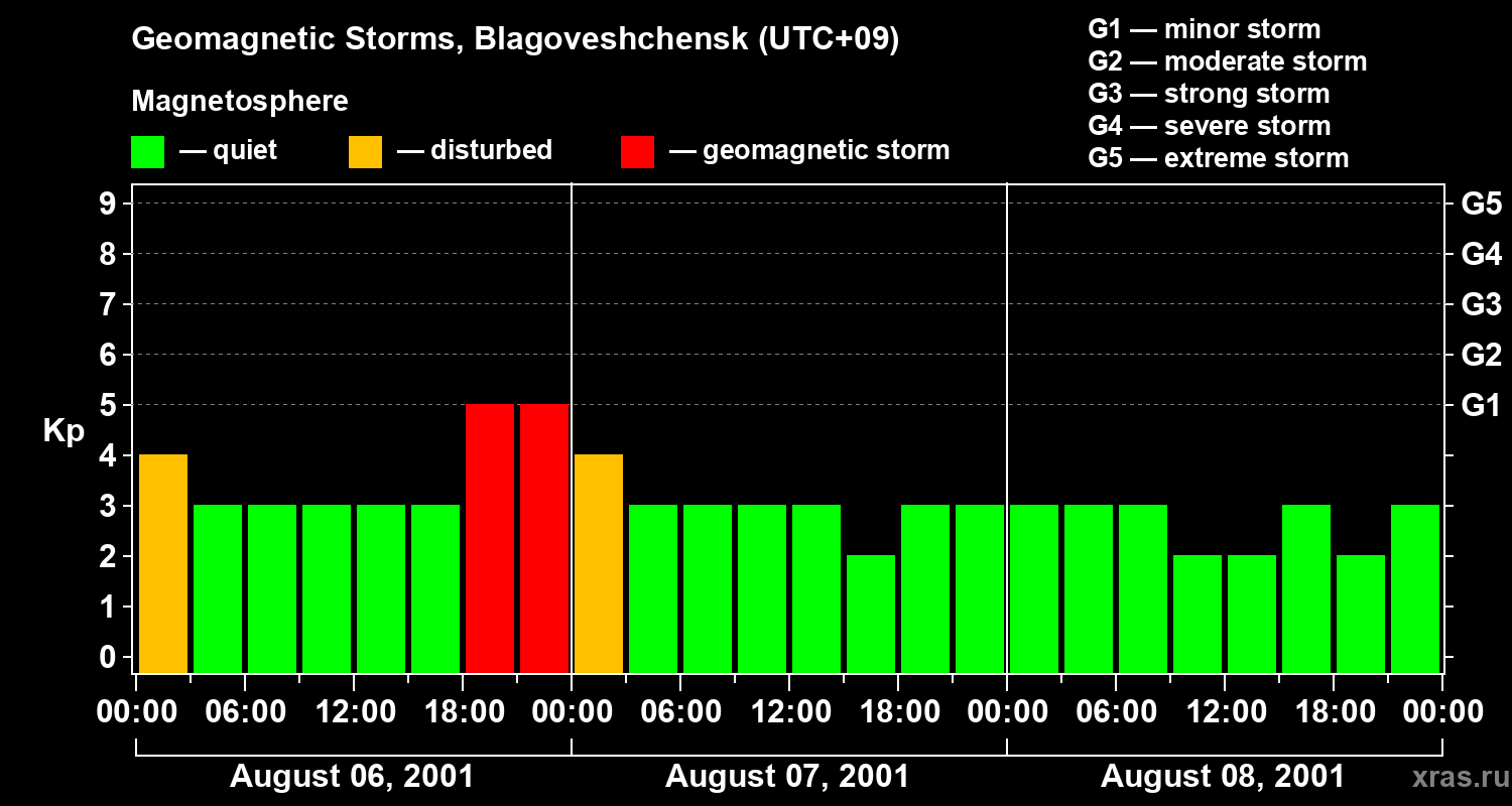 Geomagnetic storms in Blagoveshchensk on Aug 08, 2001