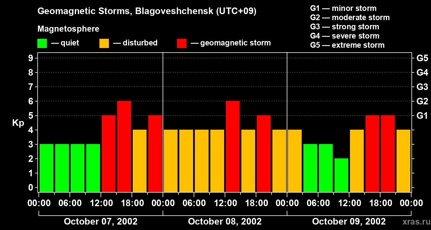Geomagnetic storms in Blagoveshchensk — Oct 09, 2002