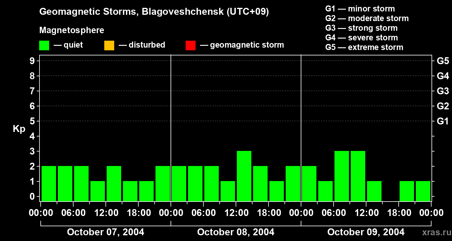 Geomagnetic storms in Blagoveshchensk on Oct 09, 2004