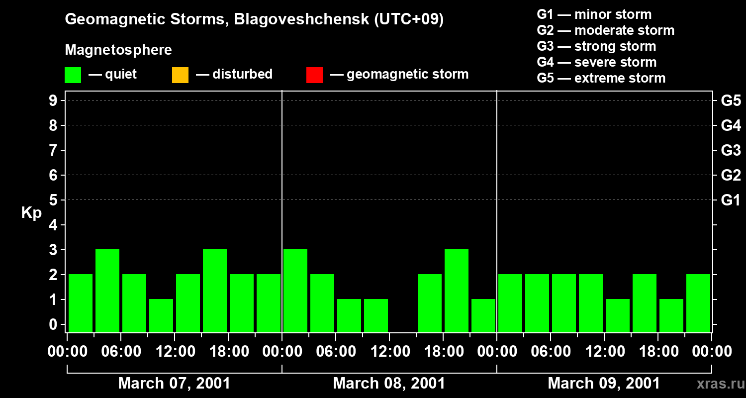 Geomagnetic storms in Blagoveshchensk — Mar 09, 2001