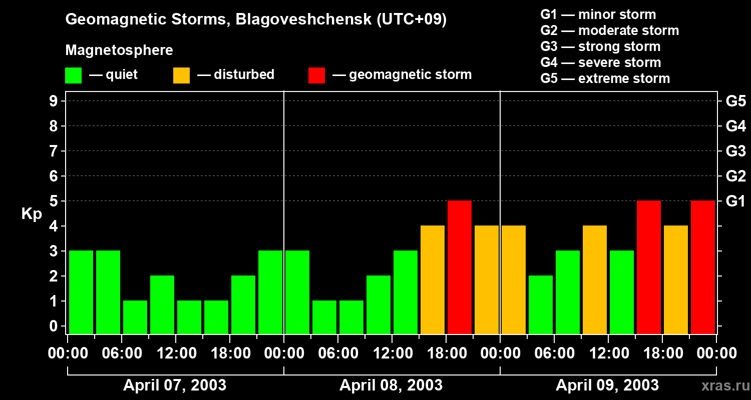 Geomagnetic storms in Blagoveshchensk — Apr 09, 2003