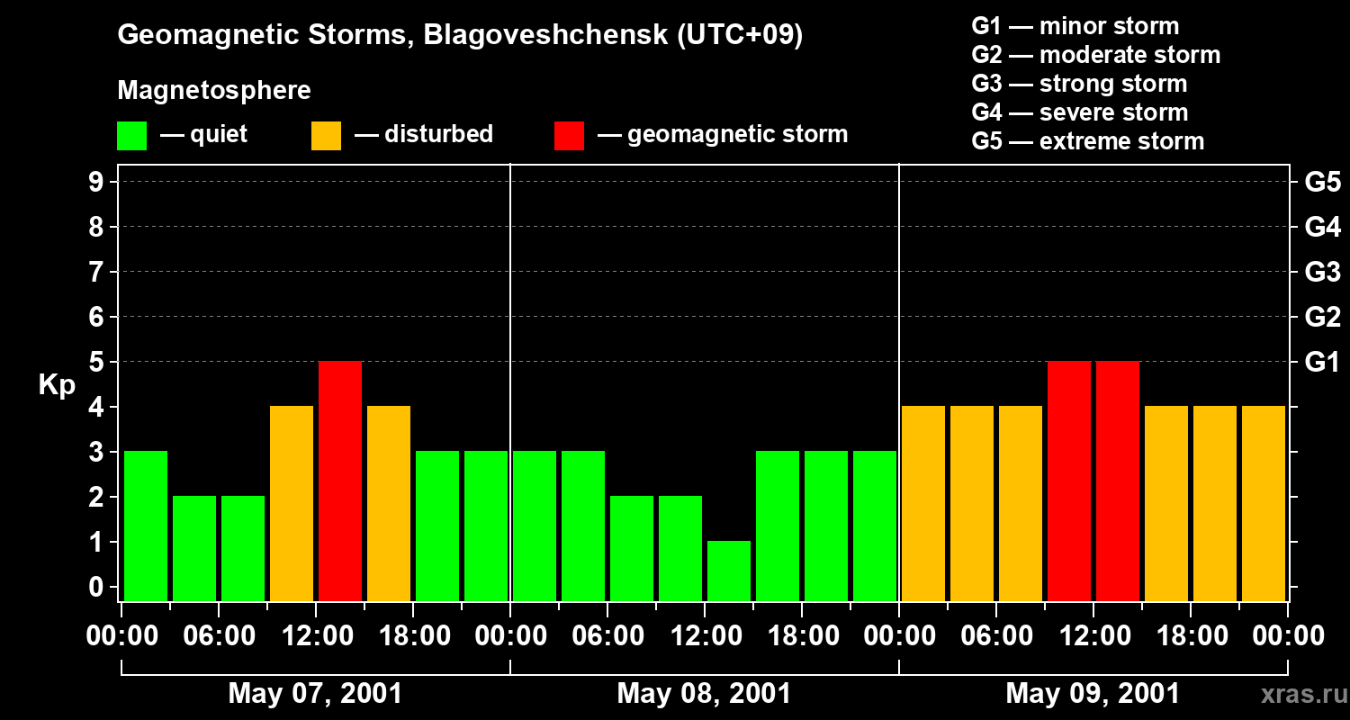 Geomagnetic storms in Blagoveshchensk — May 09, 2001
