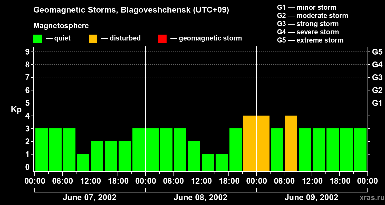 Geomagnetic storms in Blagoveshchensk on Jun 09, 2002