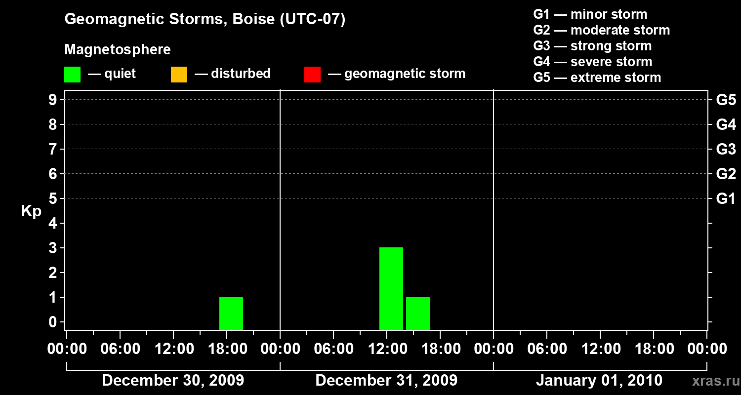 Changes in the geomagnetic index Kp from December 30, 2009 to January 1, 2010 for mid latitudes