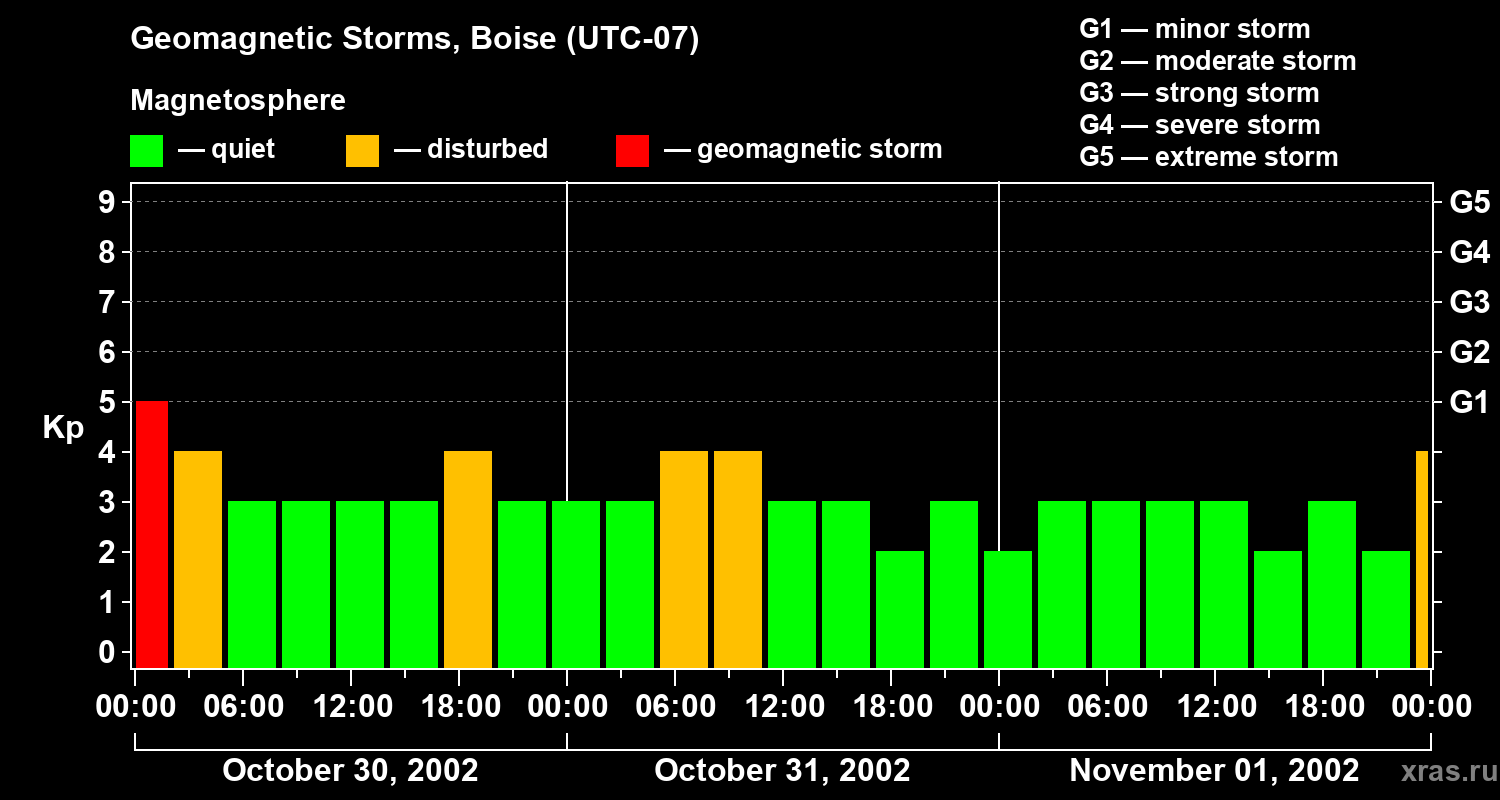 Changes in the geomagnetic index Kp from October 30 to November 1, 2002 for mid latitudes
