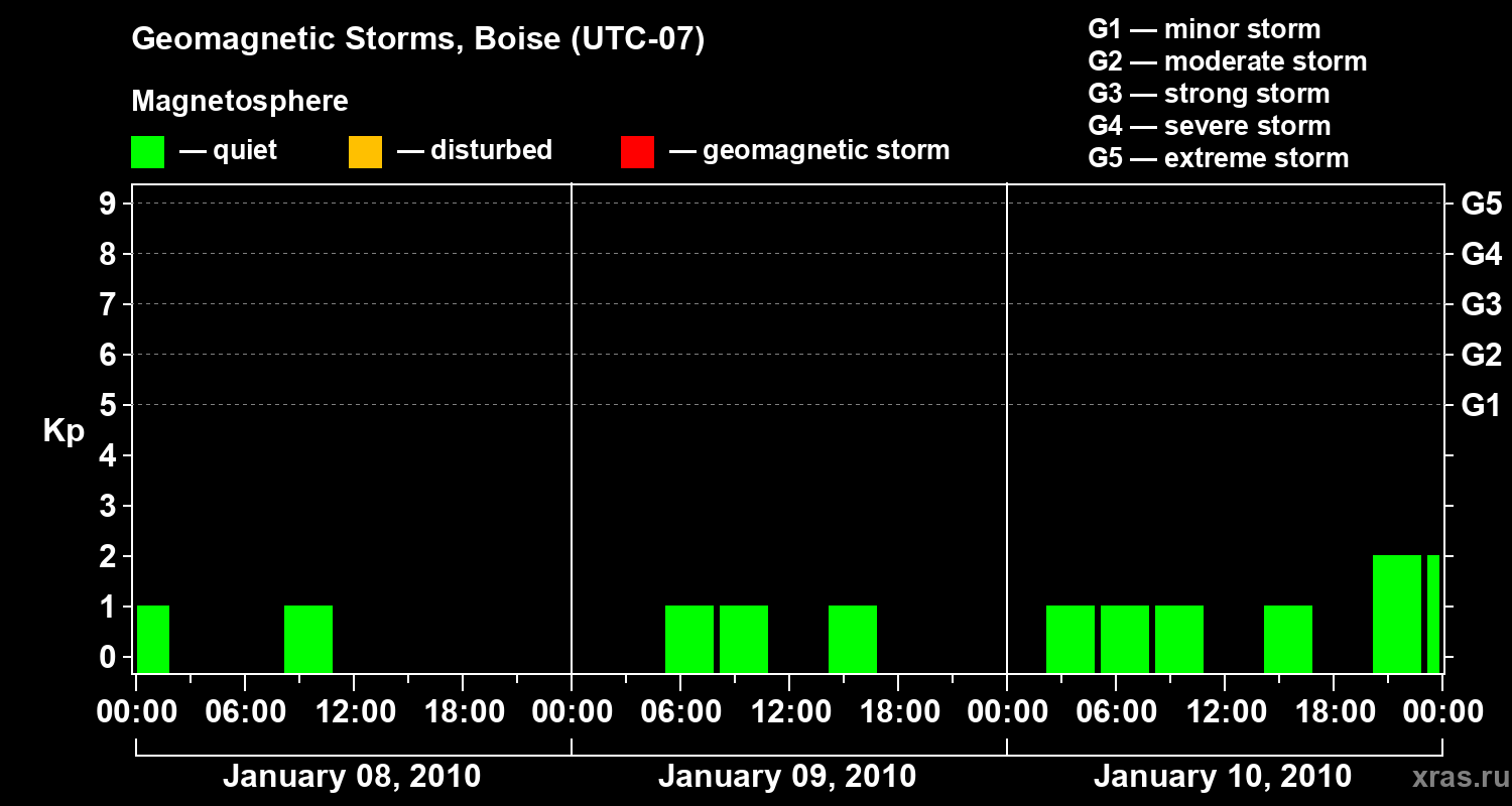 Geomagnetic storms in Boise in January 2010