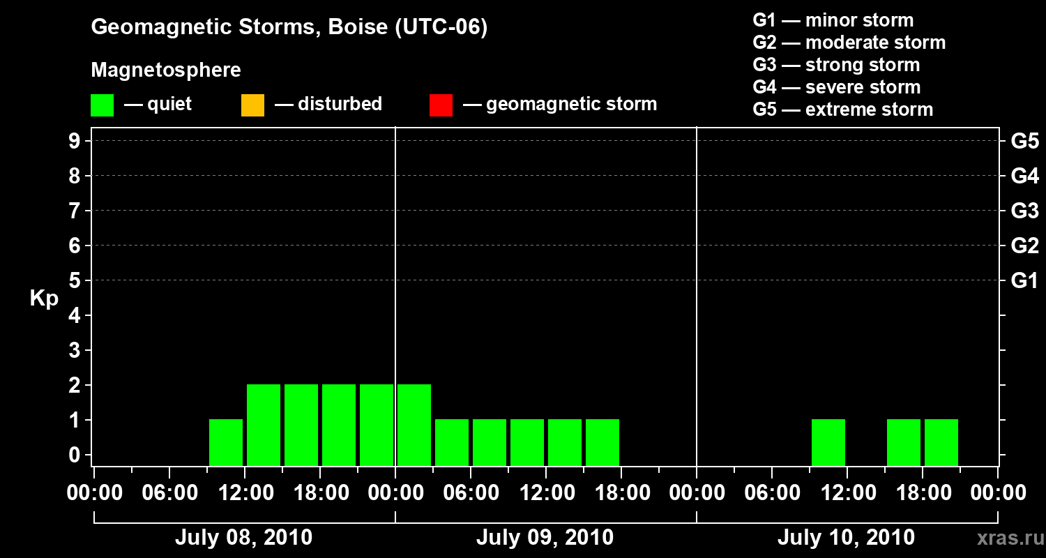 Changes in the geomagnetic index Kp from July 8 to 10, 2010 for mid latitudes